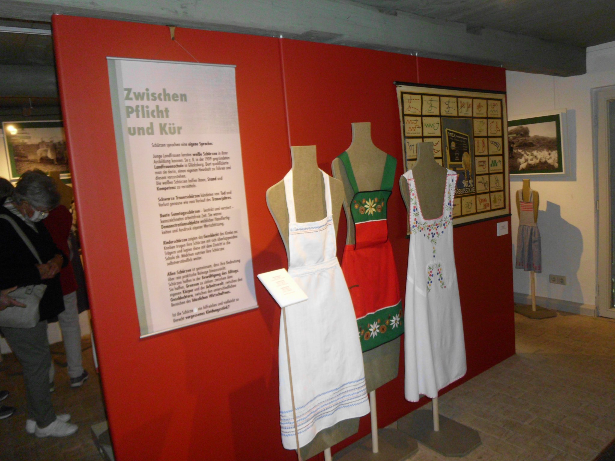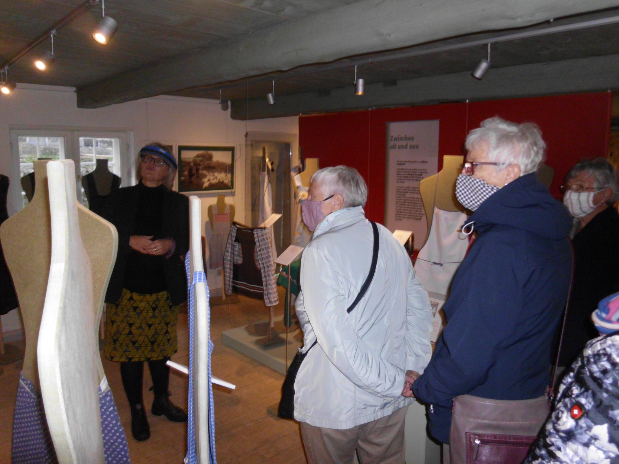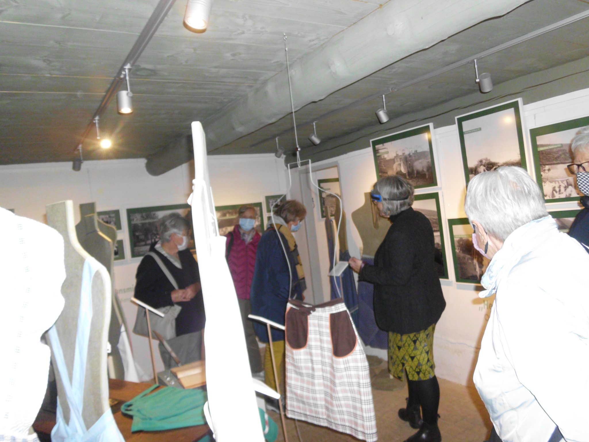 Die Schürzen-Sonderausstellung am Schluss der Führung veranschaulichte in besonderer Weise den weiblichen Arbeitsalltag früherer Zeiten in Haus, Hof und Gastwirtschaft. Aber es gab auch diverse Männerschürzen, speziell aus dem Handwerk, und sogar Kinderschürzen zu sehen.
