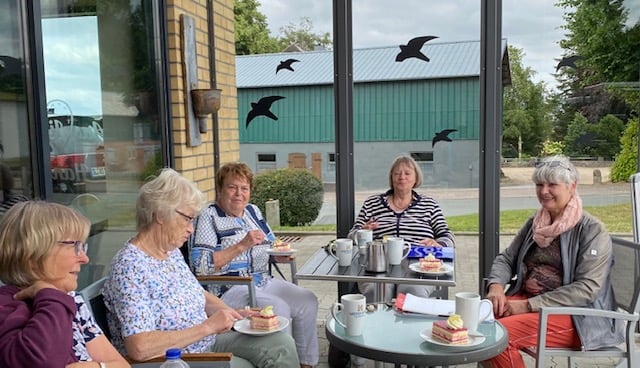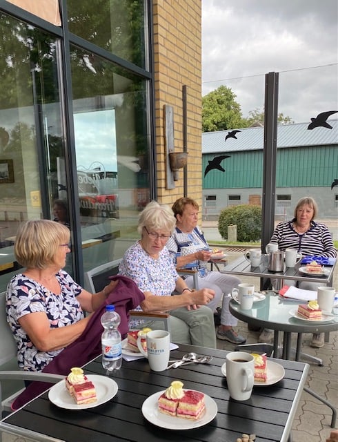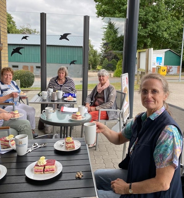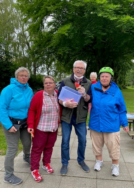 Die Teilnehmerinnen hatten auf alle Fälle jede Menge zu schnacken und waren mit Freude und viel Spaß bei der Sache. Ausgangspunkt der Tour war dann auch wieder das Ziel. Am Edeka-Markt trafen sich alle wieder zum gemütlichen Kaffeetrinken draußen vor dem Backshop. Nach dem Genuss der leckeren Sahneschnitte ging es an die Auswertung. Alle Teams errangen eine ähnliche Punktzahl, weshalb die „Siegerprämie“ gerecht aufgeteilt wurde.