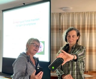 Auch für das „Handling der Kamera“ gab es ein paar Ratschläge. Zum Beispiel sollte man das Gerät immer mit beiden Händen halten und im Querformat fotografieren. Zuletzt rückte die technische Ausstattung stärker in den Fokus. Die meisten Landfrauen waren sicher überrascht, wie viele Funktionen und Hilfsmöglichkeiten sie bei ihrem Smartphone im Fotoprogramm einstellen konnten.