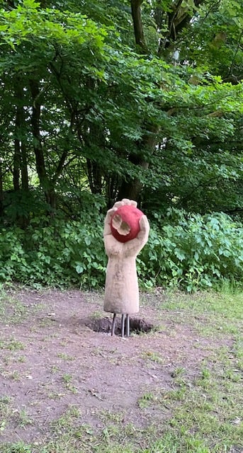 Unser Ziel war der bunte Pfad „Die Glückskinder im Volkspark – Die Brücke zur grenzenlosen Märchenwelt“ im Volkspark in Flensburg. Dieses sozialpädagogische Projekt von fünf angehenden Erziehern aus Niebüll unter Beteiligung von über 100 Kindern wurde in fünf Wochen als Praxisanteil der Erzieherausbildung in Zusammenarbeit mit dem Kinder-und Jugendbüro durchgeführt, Holzbildhauerschüler der Werkkunstschule Flensburg haben dabei rohes Eichenholz aus der Marienhölzung gekonnt bearbeitet und 16 Skulpturen geschaffen. Die Oberbürgermeisterin der Stadt Flensburg nannte es bei der Eröffnung einen Ort, der danach ruft, von Ideen bestückt zu werden.– Quelle: https://www.shz.de/32550137 ©2021-