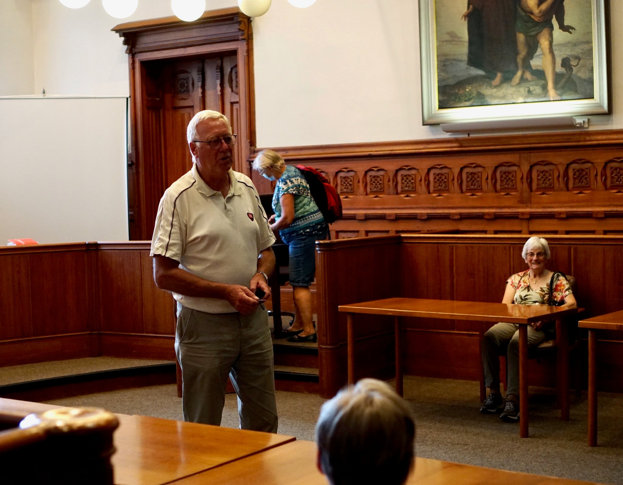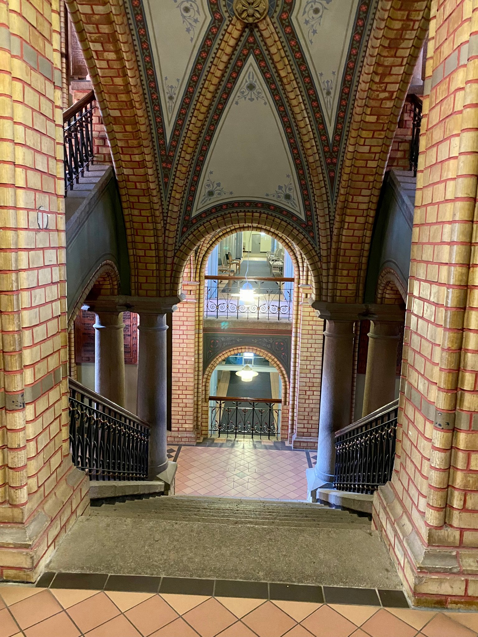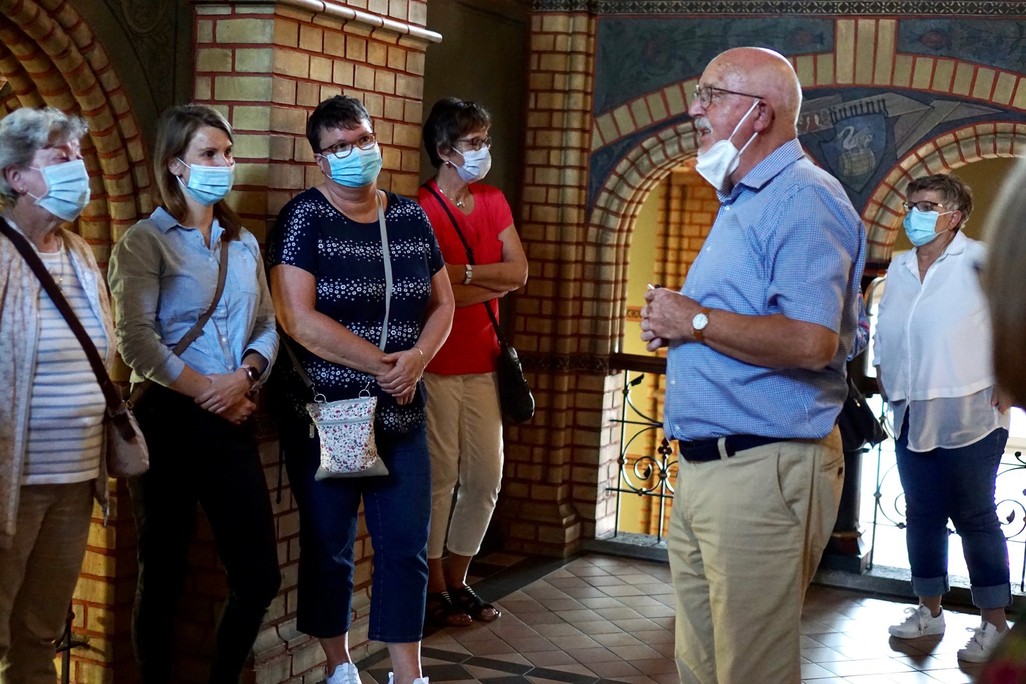 von 1882 und die aufwändige Restaurierung, unter anderem der Ausmalungen im Eingangsbereich und des Treppenhauses, waren sehr beeindruckend. Fachkundig geführt in zwei Gruppen, erhielten die rund 25