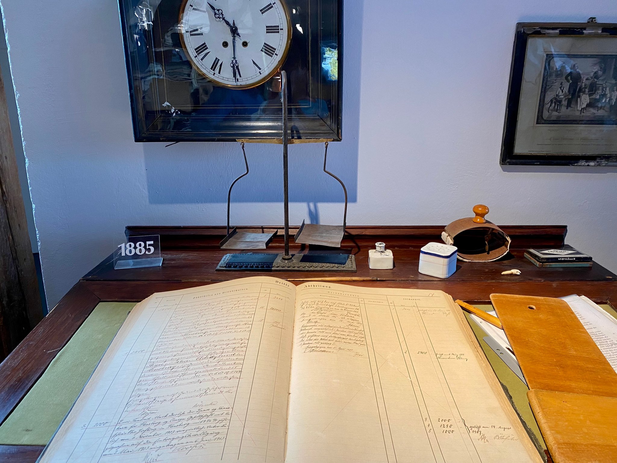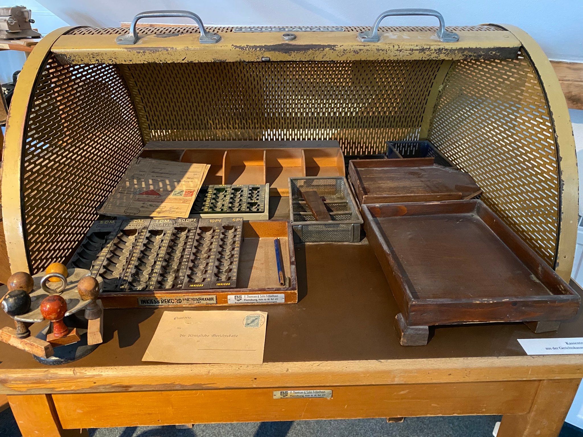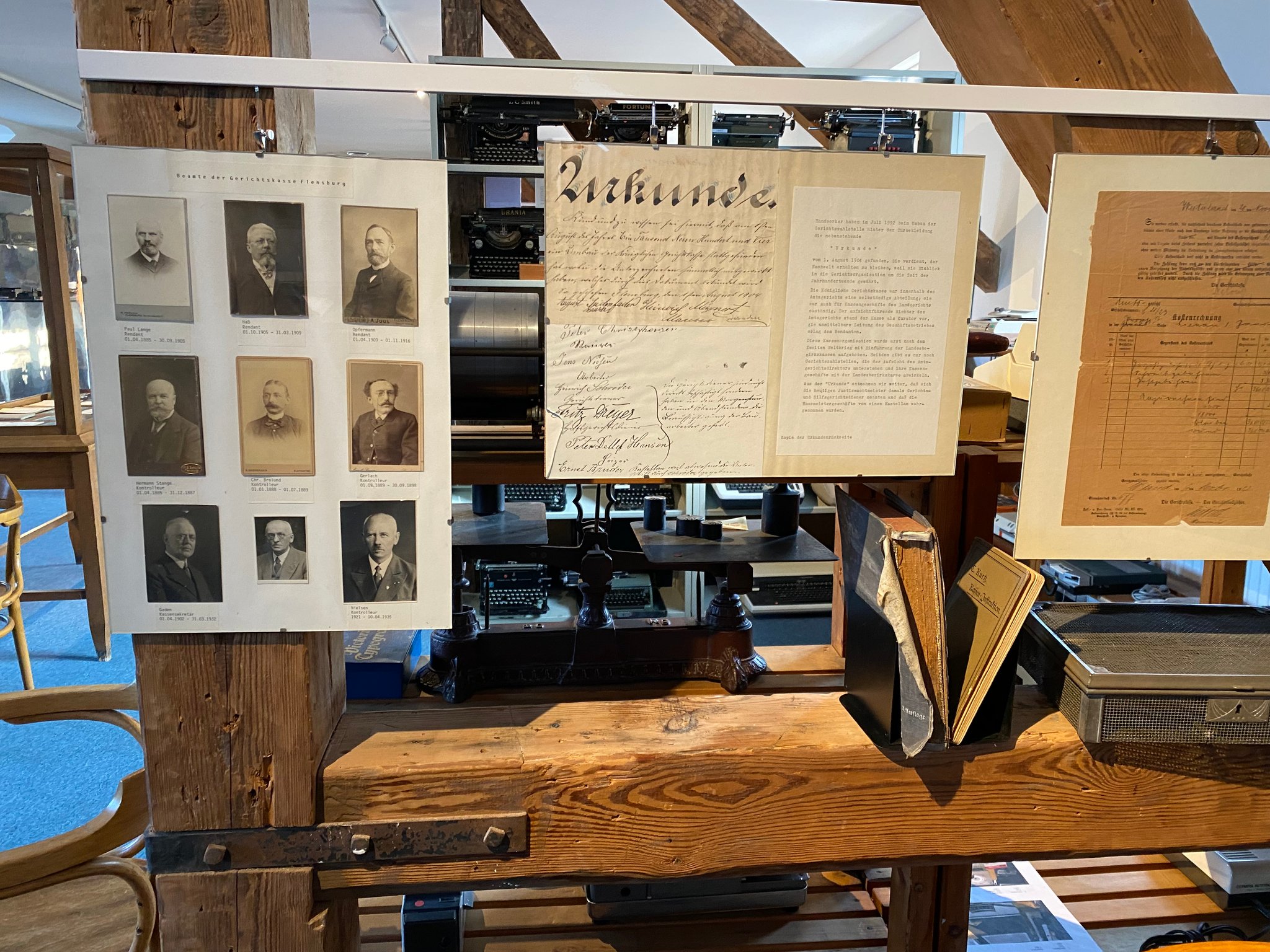 Zeit um 1930 untergebracht waren, zeigte anschaulich die Nachbildung einer Zelle und eines Arbeitsplatzes mit Originalgegenständen aus schleswig-holsteinischen Vollzugsanstalten. Einmalig in Deutschland und außerordentlich sehenswert ist auf jeden Fall die Ausstellung über die revolutionäre Entwicklung der Büroarbeit in der Abteilung „Vom Schreibpult zum Computer“. Gezeigt werden hier Büroeinrichtungen und vor allem auch Geräte aus mehr als 100 Jahren. Kleine Geschichten und Anekdoten zu einigen ebenfalls bewahrten, wertvollen Kunstwerken oder kuriosen Gerichtsverhandlungen rundeten den überaus interessanten Nachmittag ab. Bei einem Glas Sekt und pikanten Snacks gab es in der Pause auch noch die Gelegenheit für einen regen Gesprächsaustausch untereinander. (Bericht : SP /Bilder: mn)