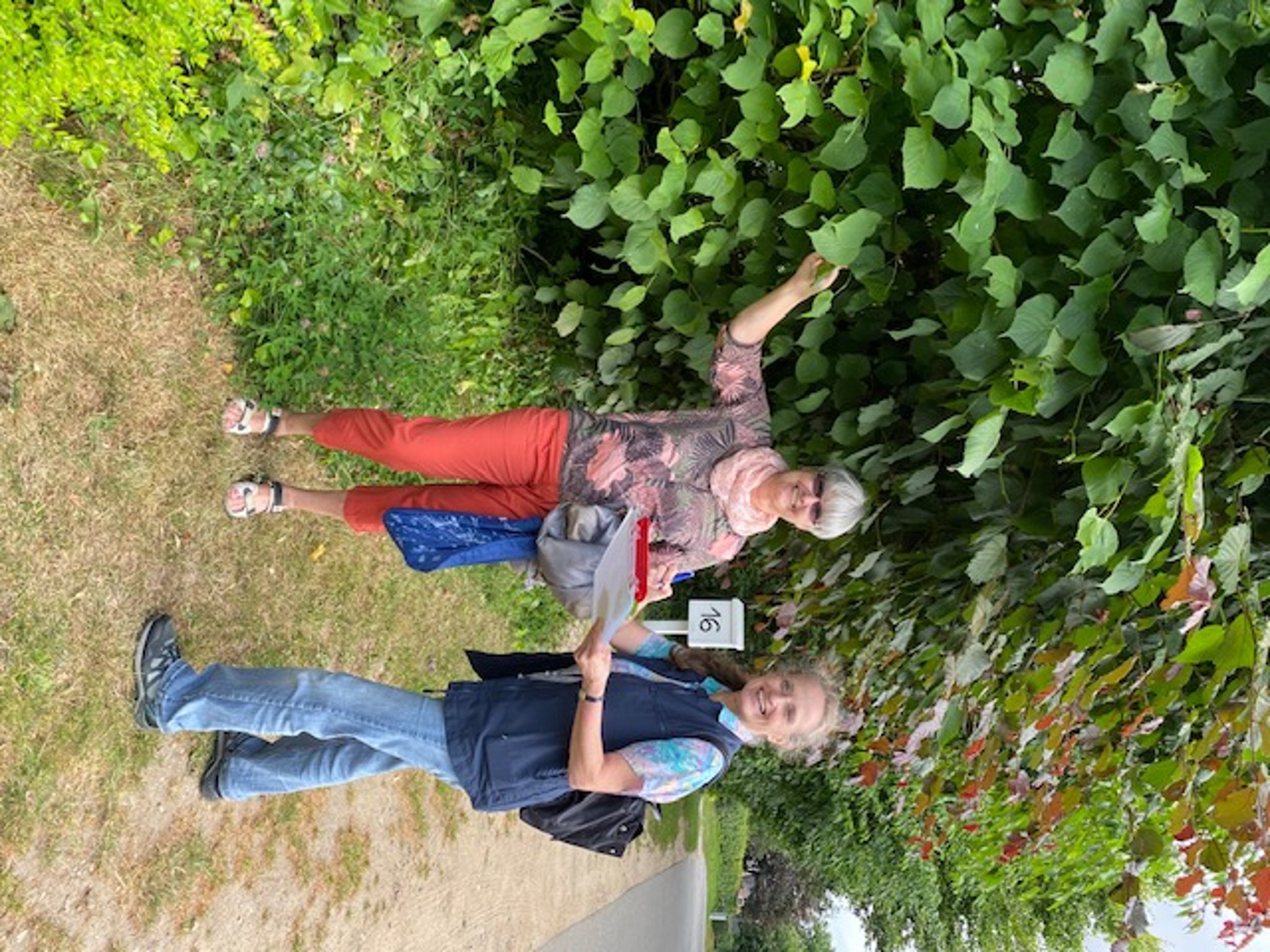 „Bei Sonne und Wind vorbei an Gärten wunderschön – durften die Landfrauen durch Hürup spazierengeh’n…“. Ja, auch ein kleines Sommergedicht gehörte zu den umfangreichen Aufgaben der kleinen Schnitzeljagd durch die Gemeinde, die der Landfrauenverein Hürup im Juli in seinem Programm hatte. In kleinen Grüppchen und mit Zettel und Stift bewaffnet, wurde der zuvor von der Vorsitzenden Ilka Wartenberg ausgearbeitete Fragenkatalog der Reihe nach abgearbeitet - Bewegung für Körper und Geist sozusagen. Ein paar Naturkenntnisse waren dabei durchaus von Nutzen. Die eifrige Suche nach einem Lindenblatt zum Beispiel war Anlass für „fachliche Dialoge“ und so einige Fehlgriffe aufgrund der Ähnlichkeit mit den Blättern der zahlreichen Haselnussbäume im Knick. „Abgucken“ bei den anderen war natürlich verboten!