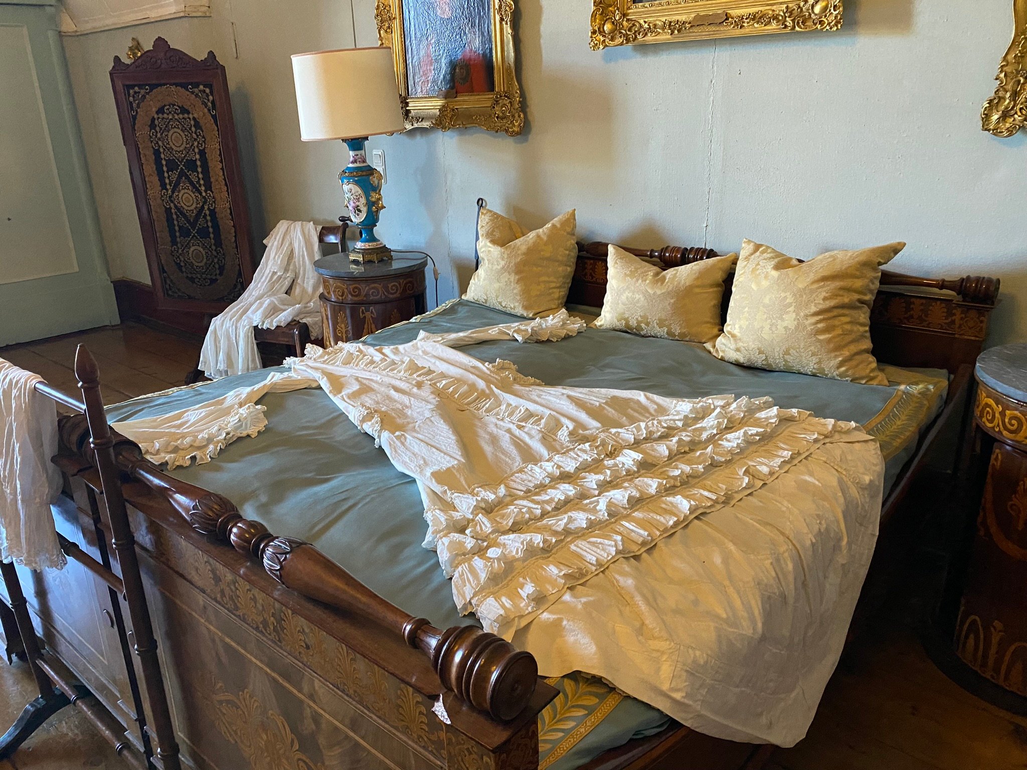 Die Landfrauen bekamen auch Einblick in einige authentisch ausgestatteten Wohnräume und erfuhren neben kleinen Anekdoten interessante Details zur Baugeschichte und den einmaligen Kunstschätzen des Wasserschlosses. Zu den besonderen Attraktionen gehören beispielsweise die bedeutende Sammlung der Tapisserien und Ledertapeten und nicht zuletzt die kostbaren Möbel aus der Zeit zwischen Empire und Biedermann. Die liebevolle Dekoration mit erlesenem Porzellan und wertvollen silbernen Antiquitäten ergänzen das wunderbare Gesamtbild.