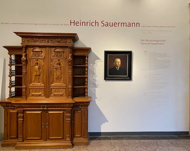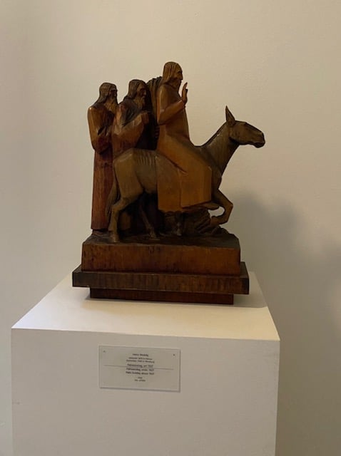 Mit großer Sachkenntnis erklärte er die Bedeutung der sehr alten und erstaunlich gut erhaltenen Holzskulpturen in der sakralen Sammlung auf dem Flensburger Museumsberg. Dem Museumsgründer Heinrich Sauermann (1842 bis 1904) dienten sie teilweise als Anschauungsmaterial für die von ihm geleitete Fachschule für Bildschnitzer. Manches erlesene Stück hatte er auf Dachböden umliegender Dorfkirchen entdeckt und mit einem Handkarren abgeholt. Zu den besonderen und kostbaren Ausstellungsstücken zählen unter anderem die „Thronende Muttergottes“ aus Viöl sowie ein reich bemalter und mit prächtigem Schnitzwerk geschmückter, fünfteiliger Marienaltar aus dem Raum Eckernförde. Im anschließend aufgesuchten „Renaissance-Raum“ mit den wunderschön bearbeiteten Möbeln und Wandbildern waren es eher die versteckten Hinweise auf die Religion, die es zu entdecken galt.