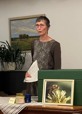Das Fazit der Referentin lautete: „Alles aus dem Bienenstock ist heiltherapeutisch nutzbar, aber eben nicht unbegrenzt vorhanden.“ Abschließend stellte Sabine Hammer-Gregersen daher auch noch einmal die große Bedeutung der Bienen für die Pflanzenbestäubung und somit für die menschliche Ernährung heraus. Sie appellierte an den Zuhörerkreis, in dieser Hinsicht selbst für den Artenschutz aktiv zu werden und beispielsweise im eigenen Garten durch den Anbau heimischer Pflanzen und Sträucher bienenfreundliche Lebensbedingungen zu schaffen. - sp-