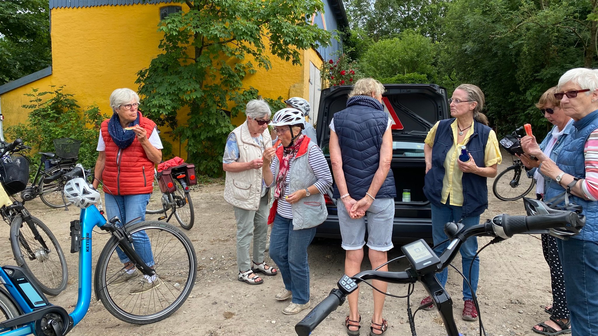 Nach der rund einstündigen, sehr interessanten Führung ging es für die Landfrauen wieder mit dem Fahrrad weiter, um in bewährter Weise auf teilweise unbekannten Nebenwegen die schöne Natur zu erkunden. Die kleine Obstmahlzeit – fest und flüssig - zwischendurch durfte natürlich nicht fehlen!